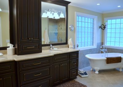 Remodeled bathrooms with custom tile showers and free-standing tub